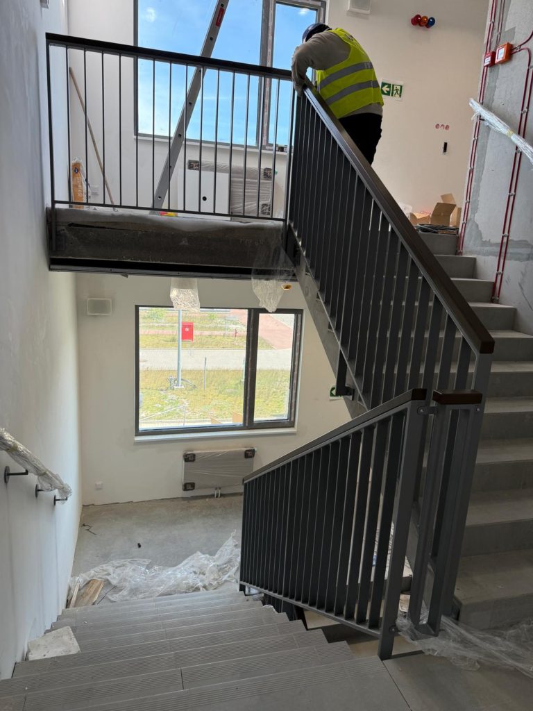 Wszystkie balustrady zostały wyprodukowane na miejscu, a następnie zamontowane na budowie przez nasze ekipy montażowe. Gwarantujemy wysoką jakość wykonania, trwałość oraz pełną zgodność z normami bezpieczeństwa.