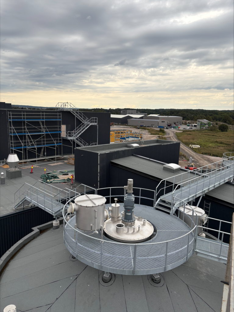platformy obsługowe wokół zbiorników, umożliwiające dostęp serwisowy do urządzeń,